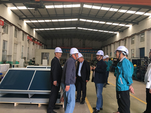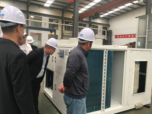 隨后,中國(guó)航天科技第四研究院42所及天風(fēng)建設(shè)張總一行對(duì)綠特生產(chǎn)車間、國(guó)家級(jí)制冷熱泵設(shè)備實(shí)驗(yàn)室和焓差實(shí)驗(yàn)室進(jìn)行了實(shí)地考察 ,深入了解生產(chǎn)設(shè)備和產(chǎn)品質(zhì)量情況,對(duì)綠特公司研發(fā)生產(chǎn)的直膨式組合空調(diào)機(jī)組進(jìn)行了詳細(xì)的考察。 通過王董及公司其他經(jīng)理的具體介紹,中國(guó)航天科技第四研究院42所及天風(fēng)建設(shè)張總一行對(duì)綠特公司的綜合實(shí)力及技術(shù)成果給予了高度的認(rèn)可。