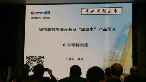 綠特集團綠特營銷總監(jiān)杜光在會議上以“綠特冷暖設備及煤改電產(chǎn)品簡介”為主題做了重要匯報,在匯報過程中,杜總針對當下暖通行業(yè)的發(fā)展現(xiàn)狀以及煤改電等政策的條件下,綠特不斷研發(fā)新的產(chǎn)品技術,以適應行業(yè)發(fā)展需求,通過對公司在熱泵與鍋爐等產(chǎn)品應用中的技術與案例進行詳細的介紹,充分體現(xiàn)了綠特在打造綠色發(fā)展中取得的良好效益與經(jīng)濟效益,讓綠特產(chǎn)品在為推動綠色暖通行業(yè)的發(fā)展做出更多的貢獻。